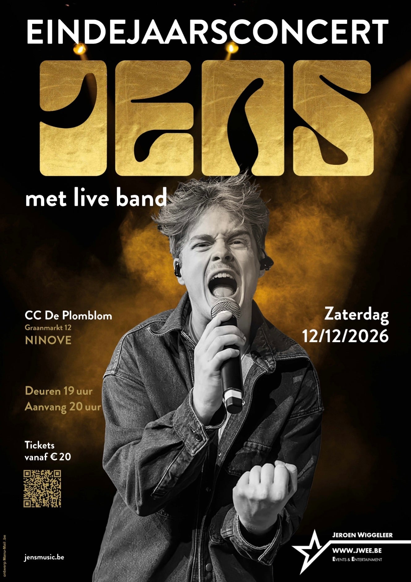 Op 12 december 2026 staat JENS met zijn live band, voor de allereerste keer in CC De Plomblom in Ninove.